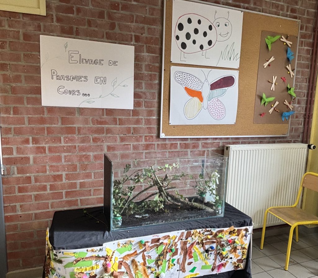Grâce à notre intervenante Amélie de Natura Kid’z, nous avons eu la possibilité d’adopter cinq phasmes dont les enfants vont devoir s’occuper durant toutes l’année et pourquoi pas avoir des bébés phasmes sur la fin d’année scolaire.