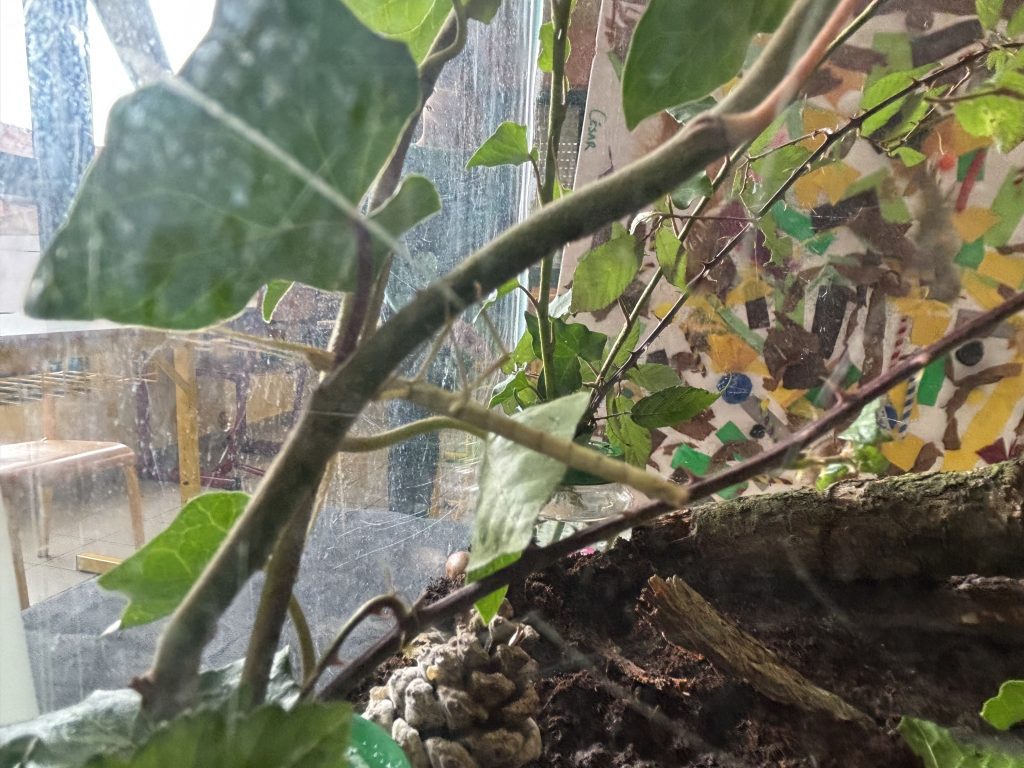 Les enfants ont pu fabriquer des décorations pour l’accueil des phasmes, chercher les feuilles qui sont comestibles pour eux et ensuite aménager le terrarium pour les accueillir.