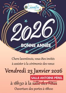 Cérémonie des vœux 2026 19 décembre 202420 janvier 2026Equipe de rédaction Calendrier Quand : 23 janvier 2026 @ 18:00 – 24 janvier 2026 @ 20:00 2026-01-23T18:00:00+01:00 2026-01-24T20:00:00+01:00 Où : Salle des fêtes Communal