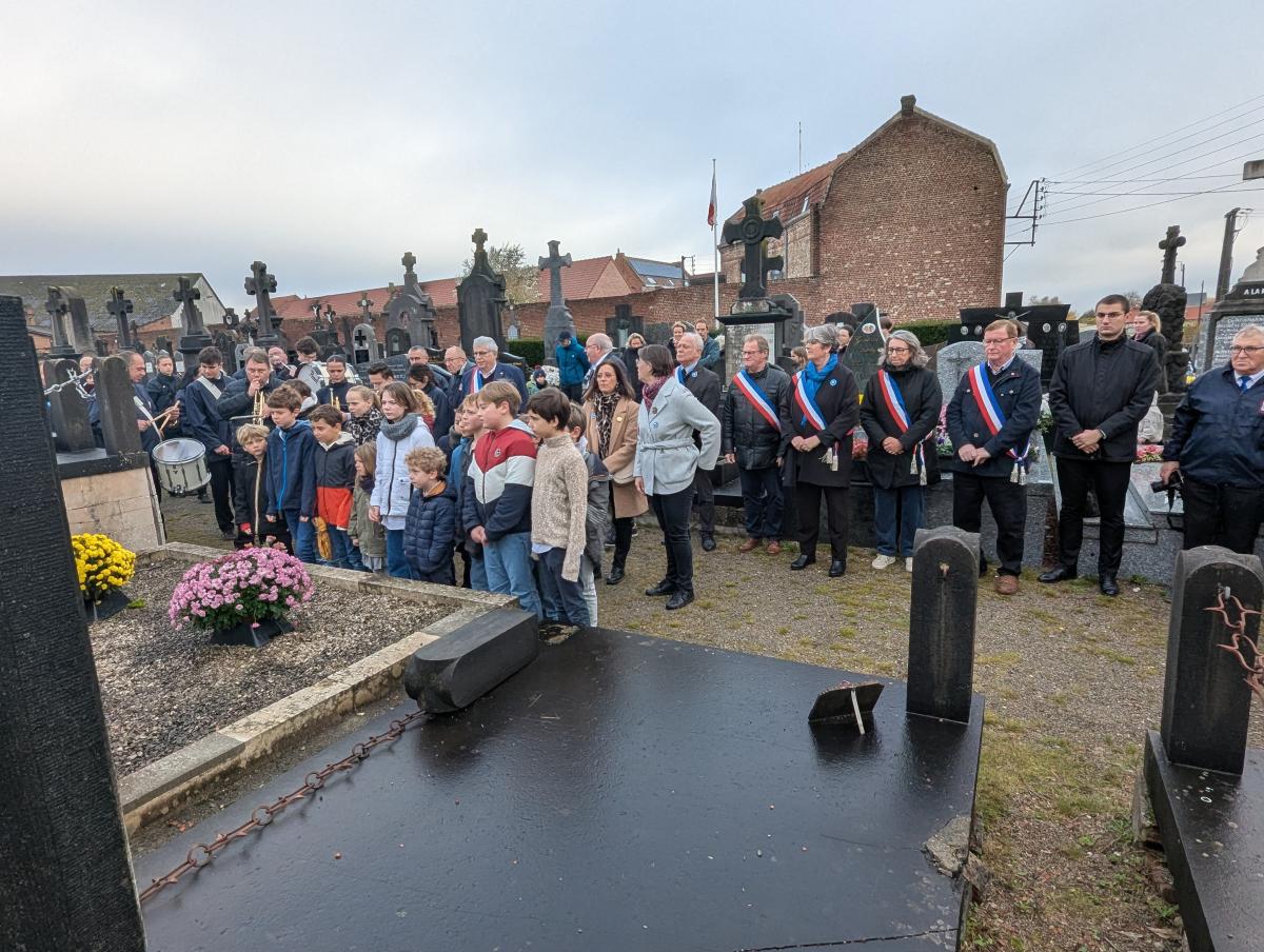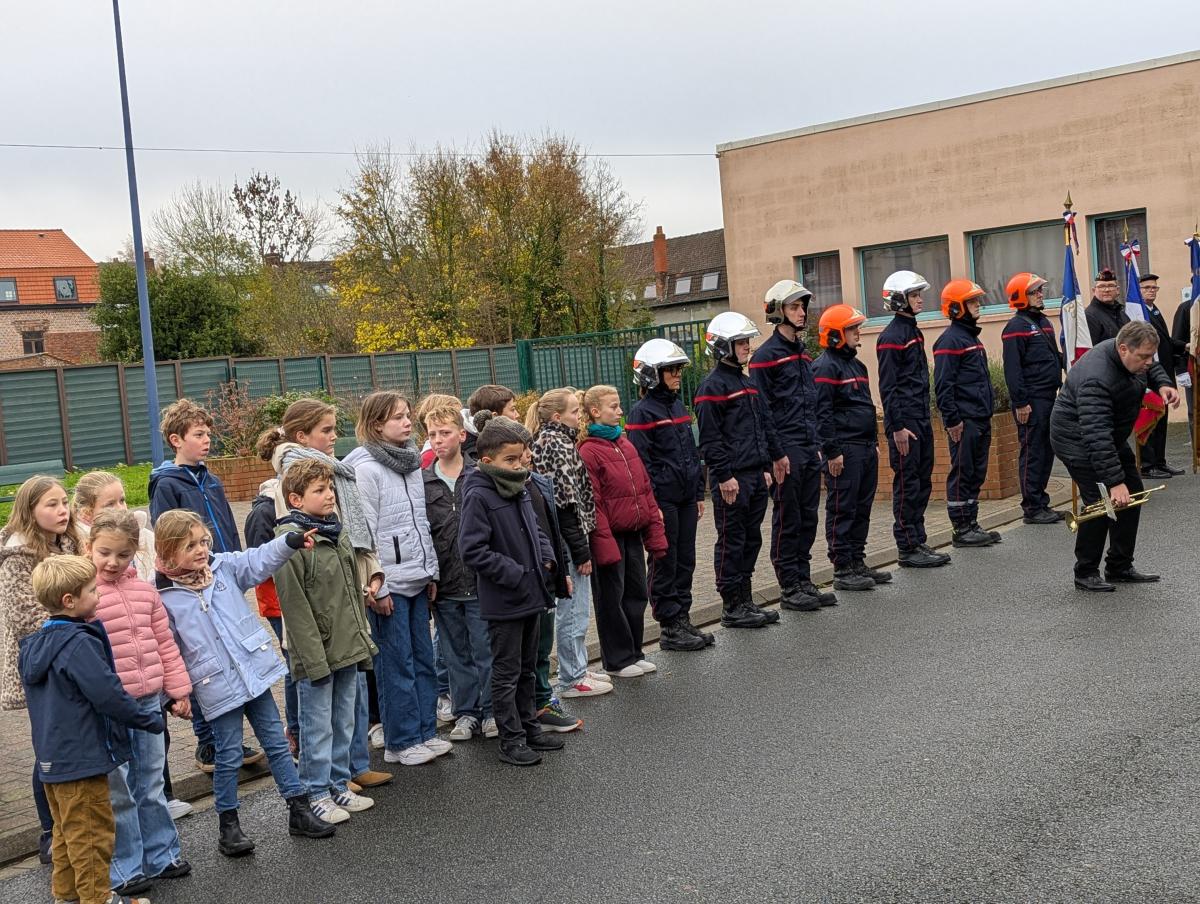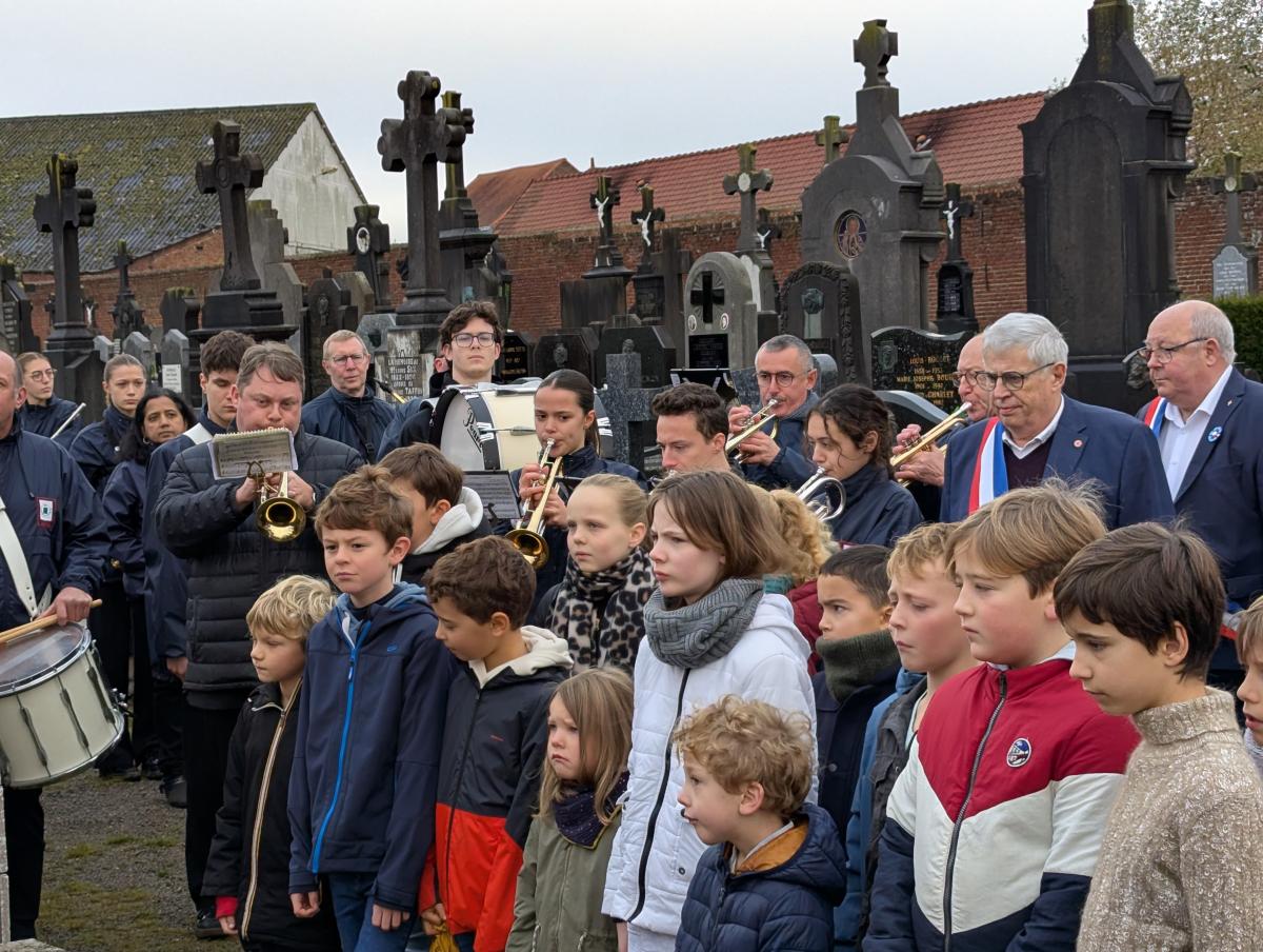 Enfants accompagnés de leurs parents, élus, membres du Souvenir Français et du CATM, sapeur-pompiers, gendarmes et représentants des écoles et collèges, Harmonie municipale se sont réunis sur le parvis de l’église pour le devoir de mémoire.
