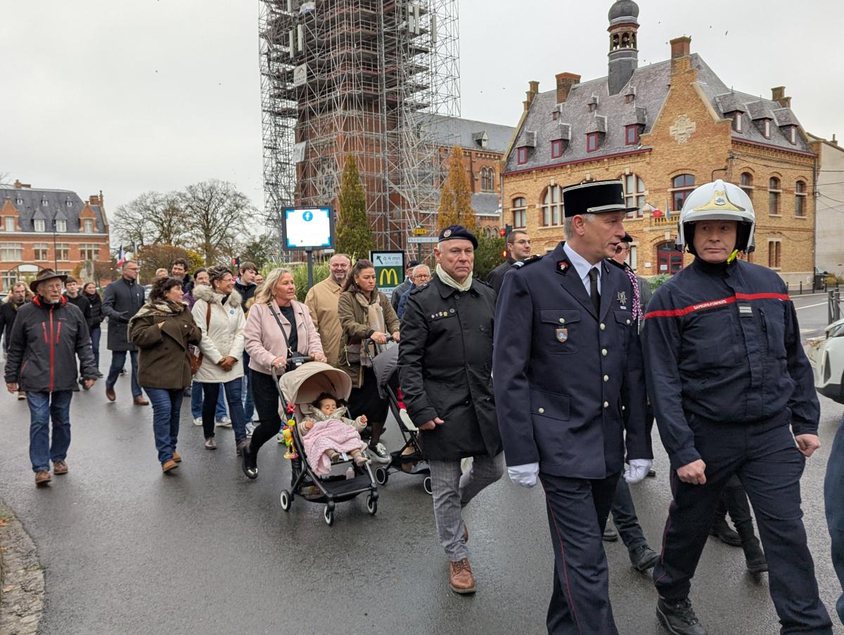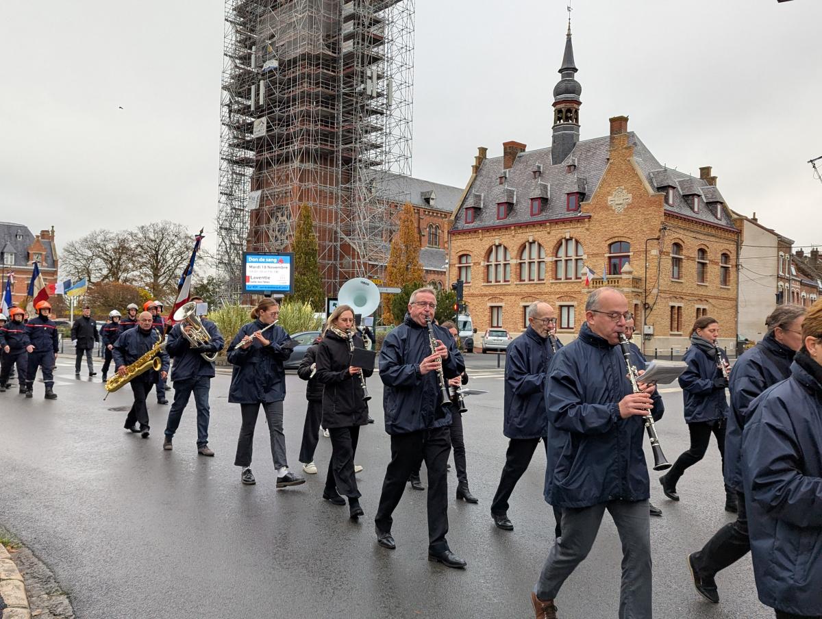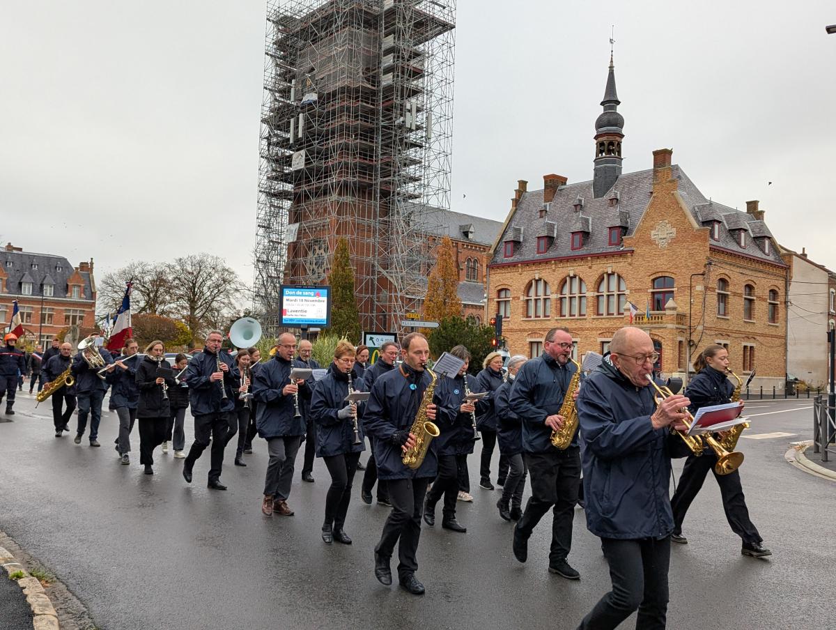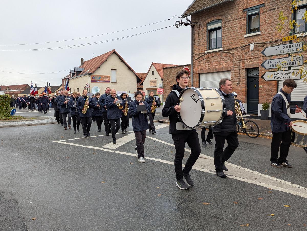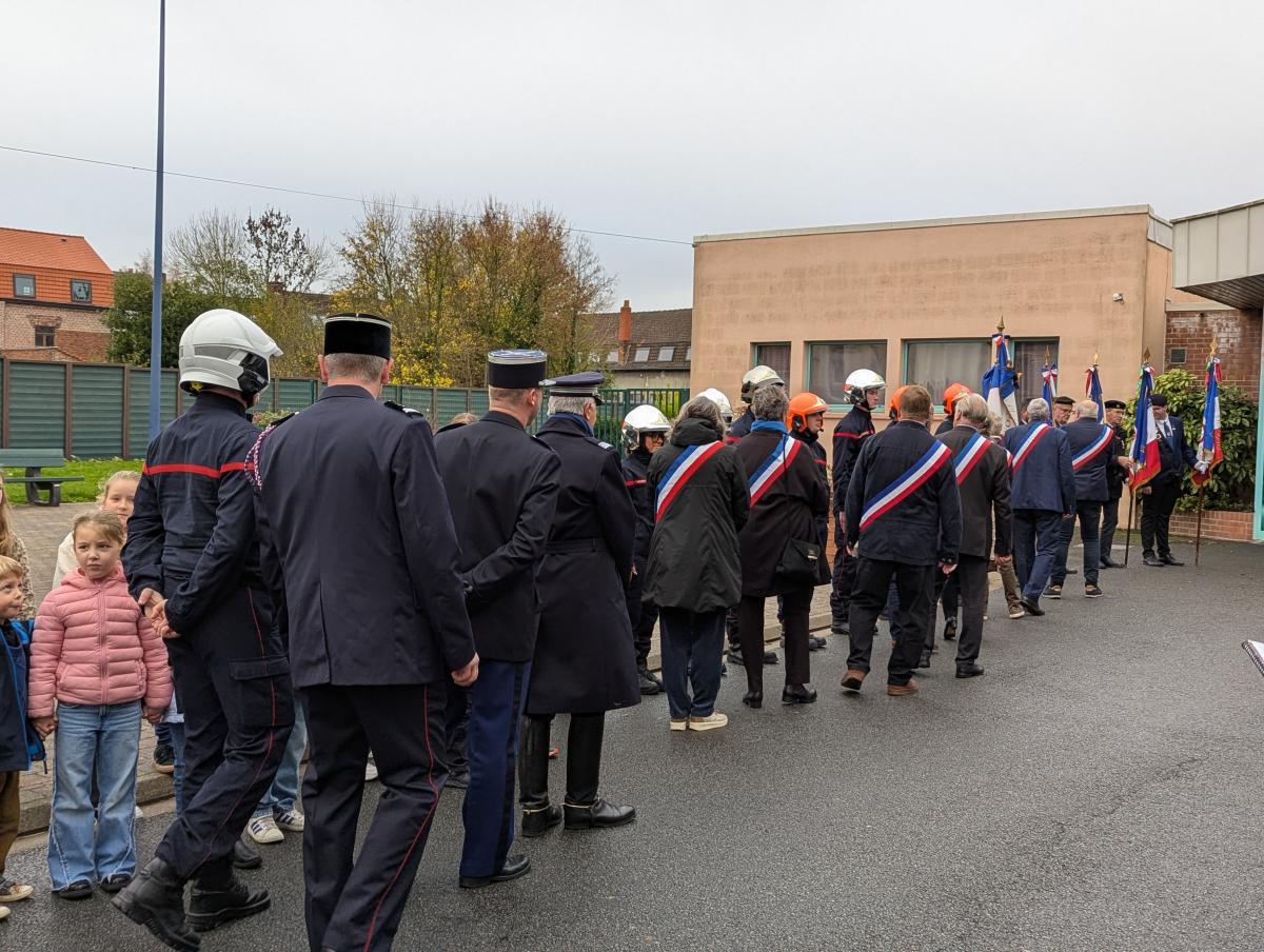 Puis le cortège a défilé au son de l’harmonie municipale pour se recueillir jusqu’au cimetière militaire puis jusqu’à la salle des fêtes.