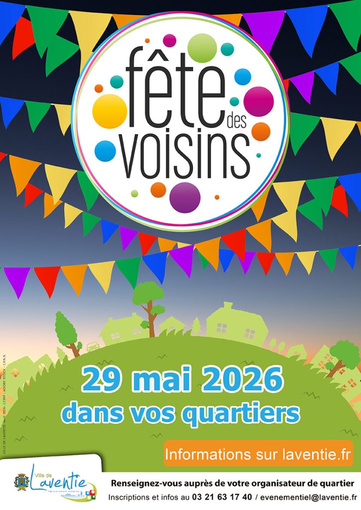 La fête des voisins, organisée par la commune de Laventie, se déroulera le vendredi 29 mai dans vos quartiers. Retrouvez-vous entre voisins pour passer une agréable soirée !